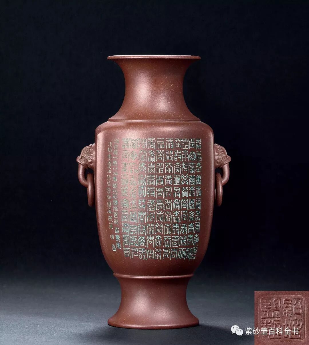 5069 當(dāng)代 顧紹培制陶、譚泉??贪賶蹐D紫砂獸耳銜環(huán)瓶