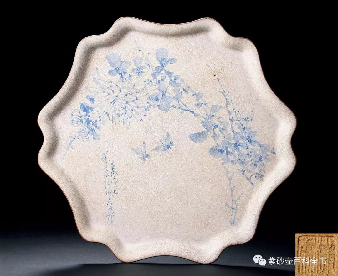 5014 民國(guó) 種槐居士并繪花蝶圖花口盤