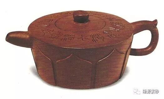 第二類是明代萬(wàn)歷年間李茂林款式的僧帽壺;該壺流短直,嵌蓋,壺肩刻有一圈十六字篆文,「浮霜冷月霽雨霄清流芳潤(rùn)渴止暑消冰。」壺底刻有:「萬(wàn)歷丁丑子京先生索,文嘉銘?!?/span>十二字楷書銘文。回旋倒讀均成文,壺身與現(xiàn)代僧人所戴帽子最為相像,是僧帽壺中比較特別的款式。
