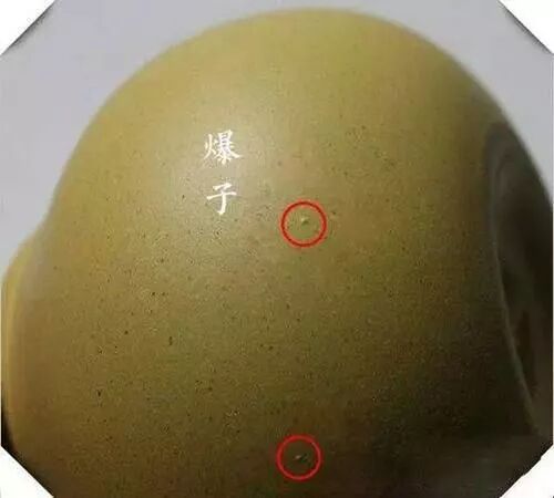 至于"凸起",術(shù)語(yǔ)為"爆疵"或"爆子"、"爆泥",通常是只有純砂?;蚝奥史浅8叩脑V紫砂泥料在窯內(nèi)燒制時(shí)整體收縮,有些稍大點(diǎn)的粒子因內(nèi)外溫差極變而炸裂,粒子周邊無(wú)緩沖而爆出。
