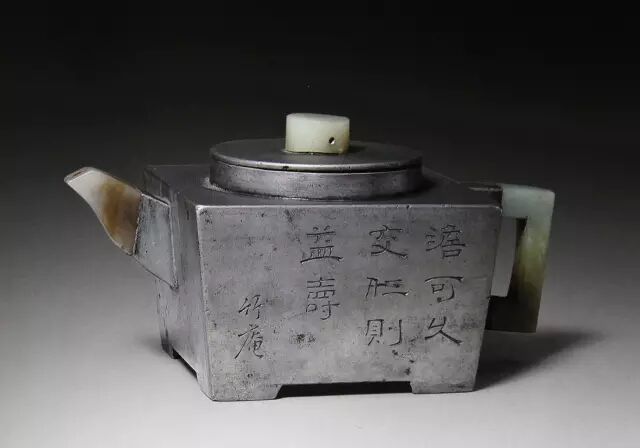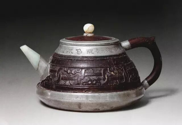 清嘉慶 宜興窯楊彭年款鑲玉錫包壺