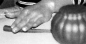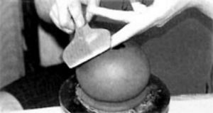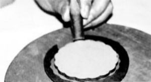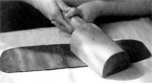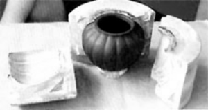 4、將打好身筒置于石膏模具中,并用工具擋規(guī)整。