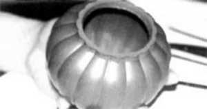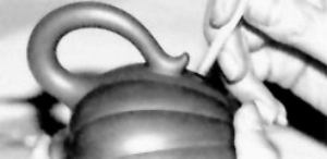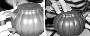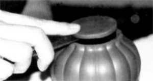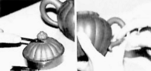 13、將制好壺紐用脂泥粘接上壺蓋,并清理和整修,使每條筋紋規(guī)整如一。