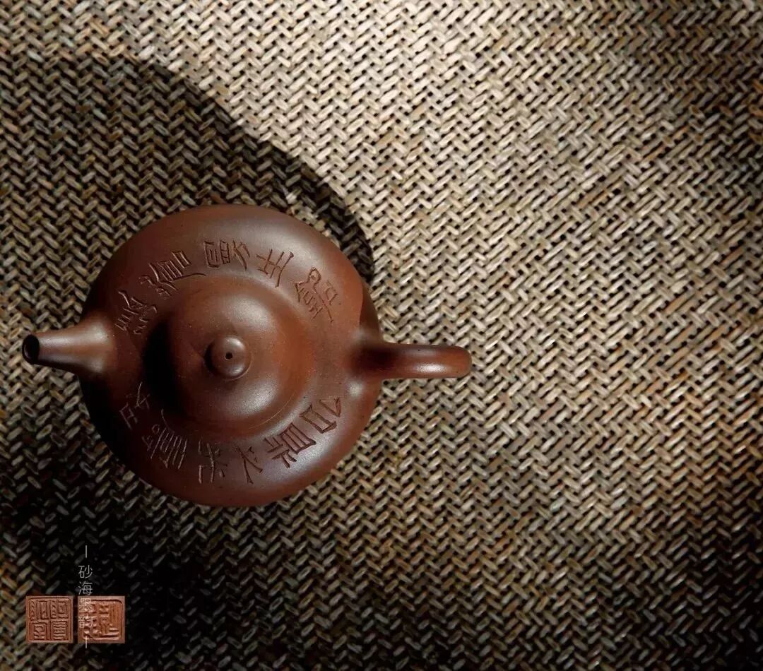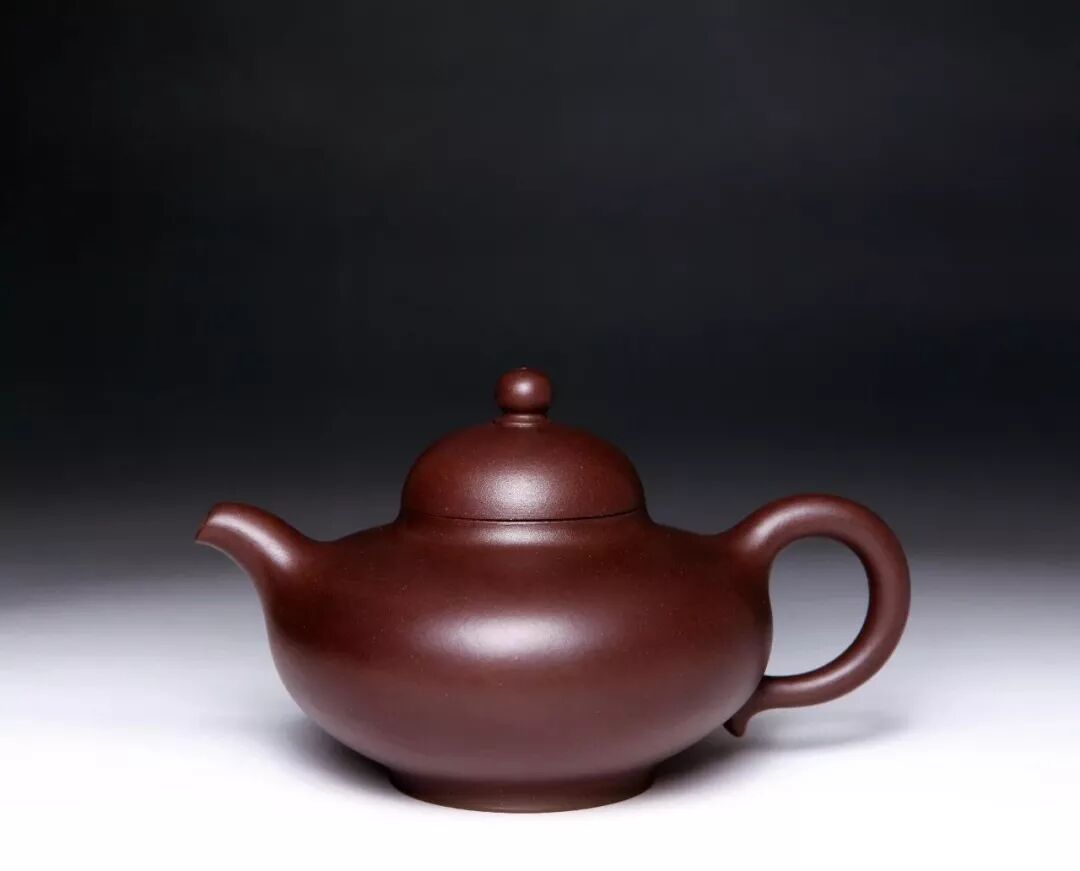 整把壺端莊雅致,比例協(xié)調(diào),造型圓潤充實,以曲線構(gòu)成主體形式,自壺鈕、蓋、身、底角,均通過柔性的曲線,呈現(xiàn)出球形大小均衡適度的節(jié)奏感。