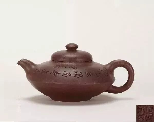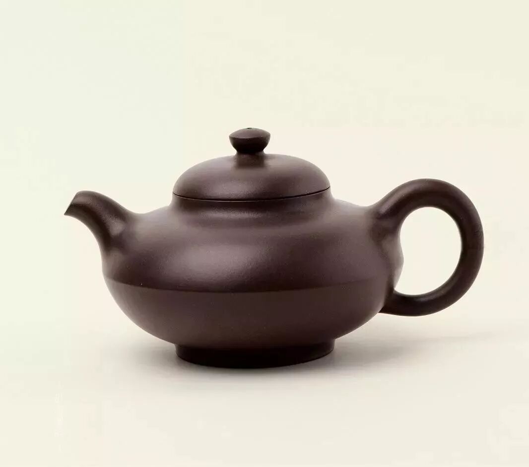 一彎嘴,圈把,截蓋與口吻合,扁鈕至腳線,與壺身緊密呼應(yīng),具有很強的形式美感。