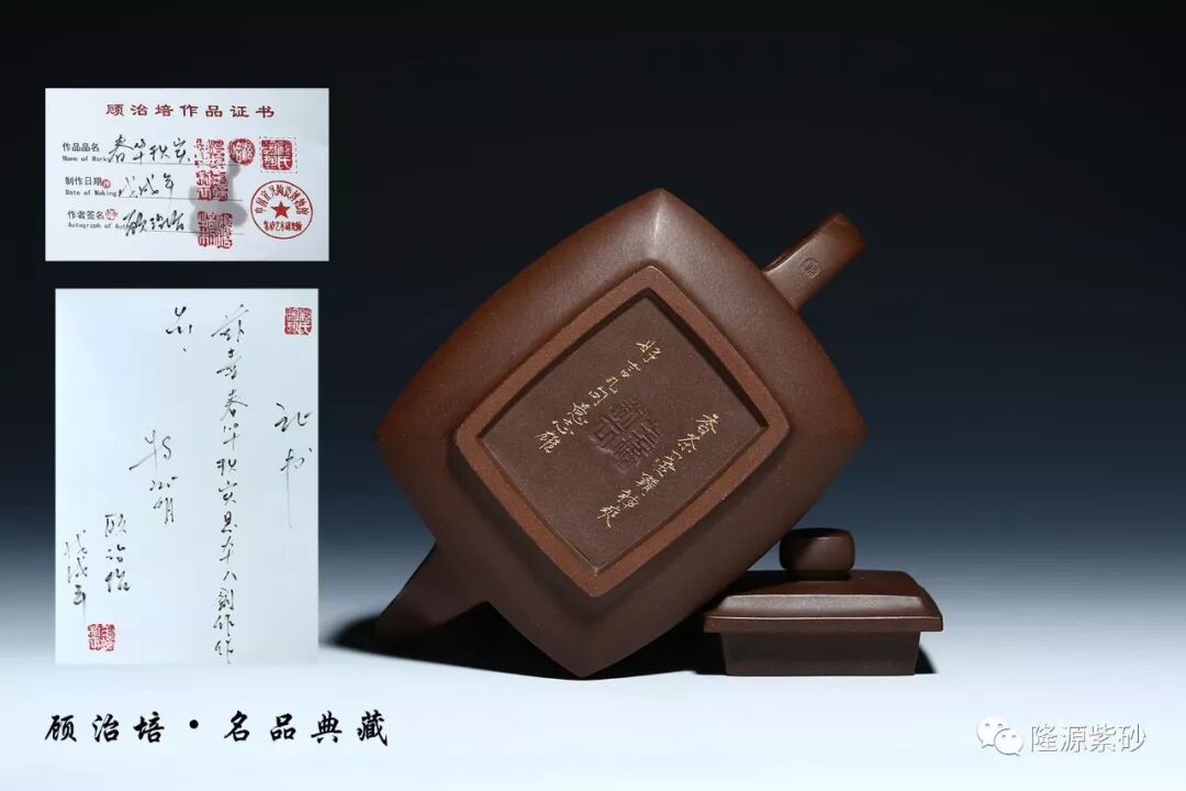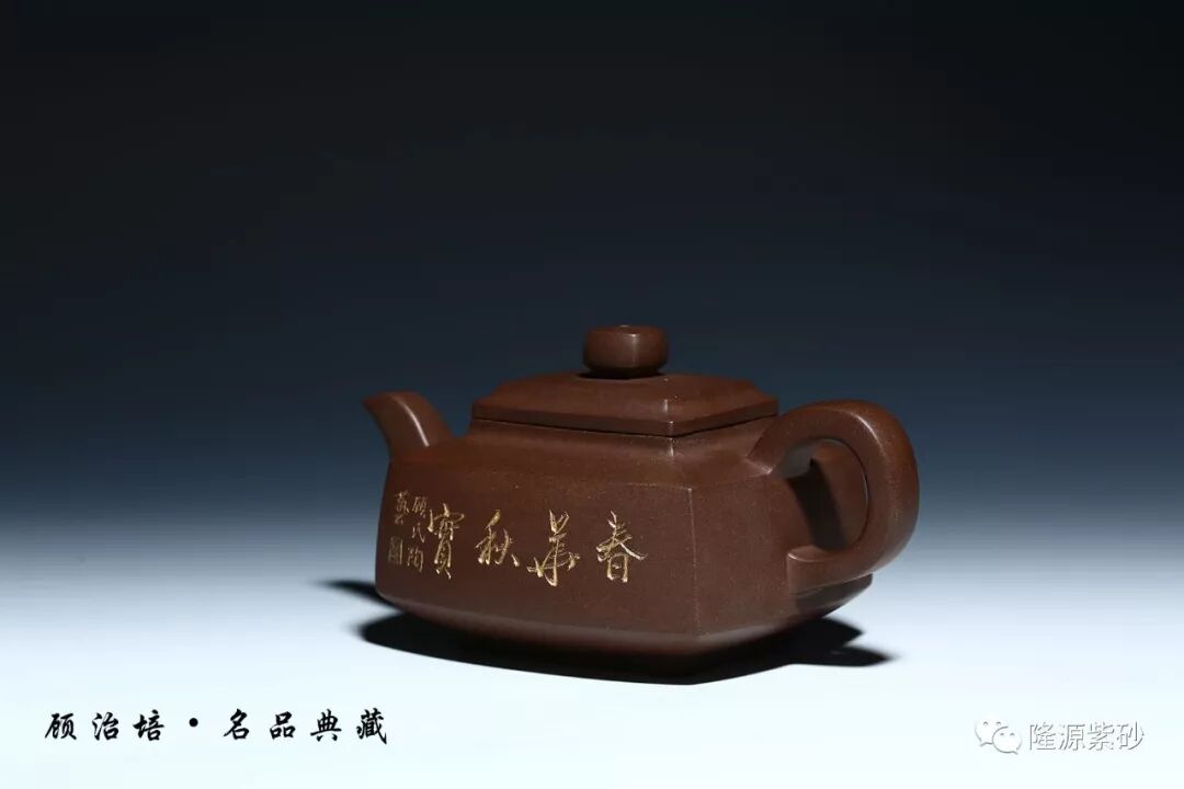 俗話說“寧做十圓不做一方”!研究員級(jí)高級(jí)工藝美術(shù)師,顧治培老師以"四方"器型為基調(diào)制成了這把【春華秋實(shí)】壺,方器的制作難度之大,足以展現(xiàn)老師精湛的制壺水平!