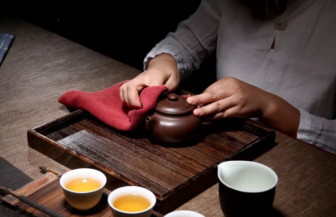 泡茶時(shí),可把茶湯澆在紫砂壺上,這樣茶湯容易被壺?zé)嵴舭l(fā),同時(shí),也容易被壺體表面吸收。