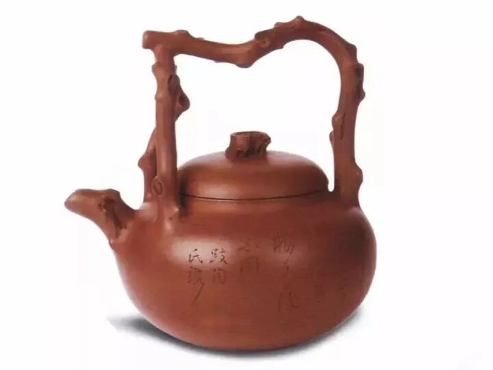 提梁把多是以梅樁、樹樁枝節(jié)為形,疤痕累累,蒼老勁挺,疤瘤處理上枯枝新芽,新穎別致。