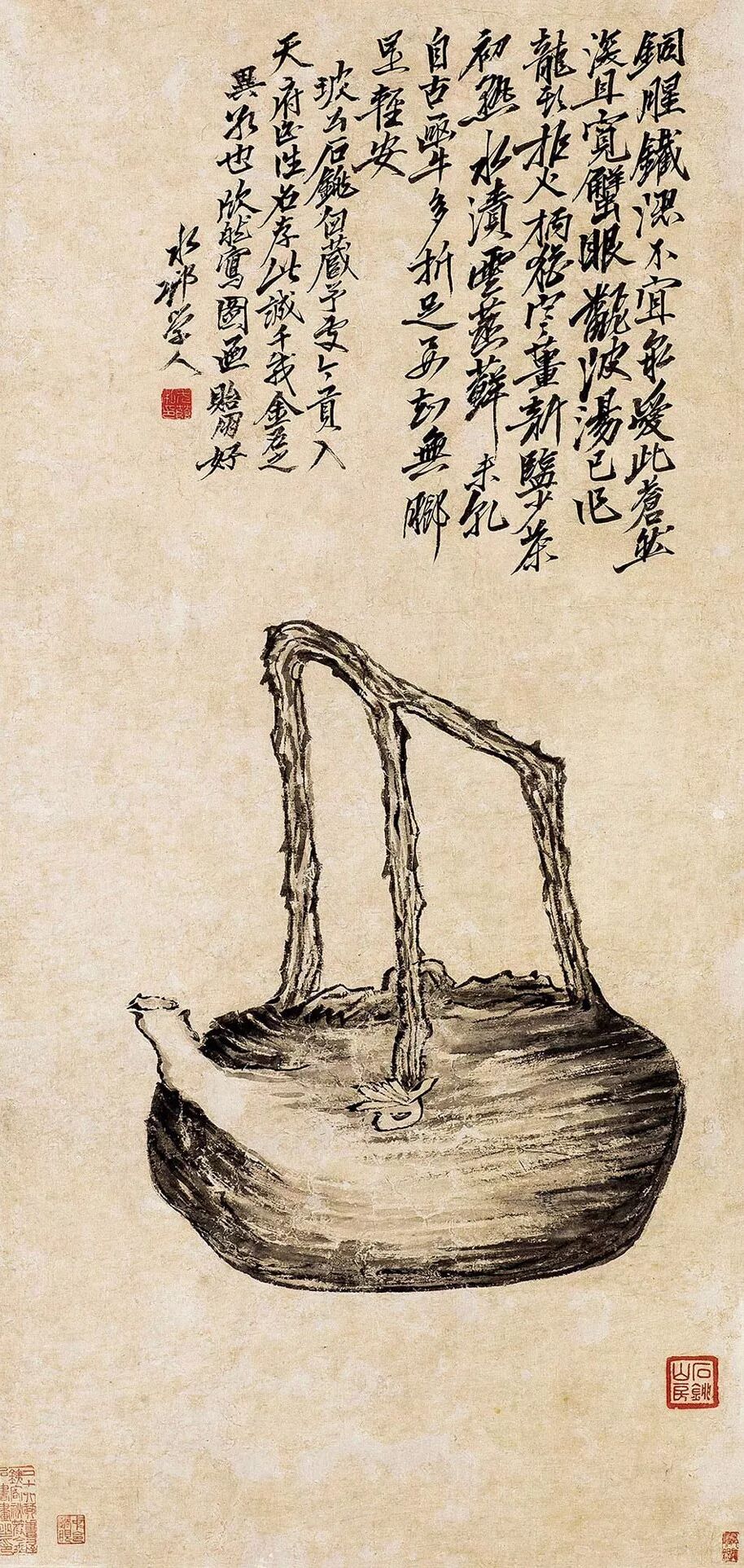 此畫的典故,乃是宋代周穜贈予蘇軾石銚壺,而后蘇公曾賦詩謝之。