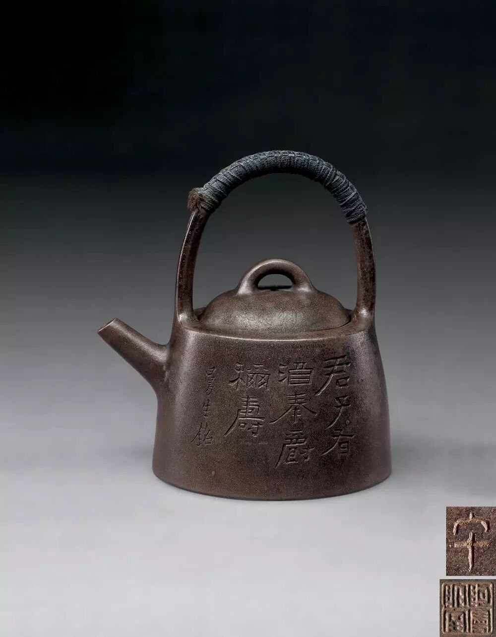 此壺為龐元濟舊藏,亦是陳曼生與楊彭年合作之石銚提梁。