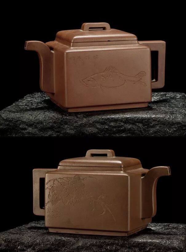 此壺由亞明、王寅春、任淦庭、徐秀棠四位大師合作。壺式名曰亞明四方,最早的設(shè)計者便是畫家亞明。
