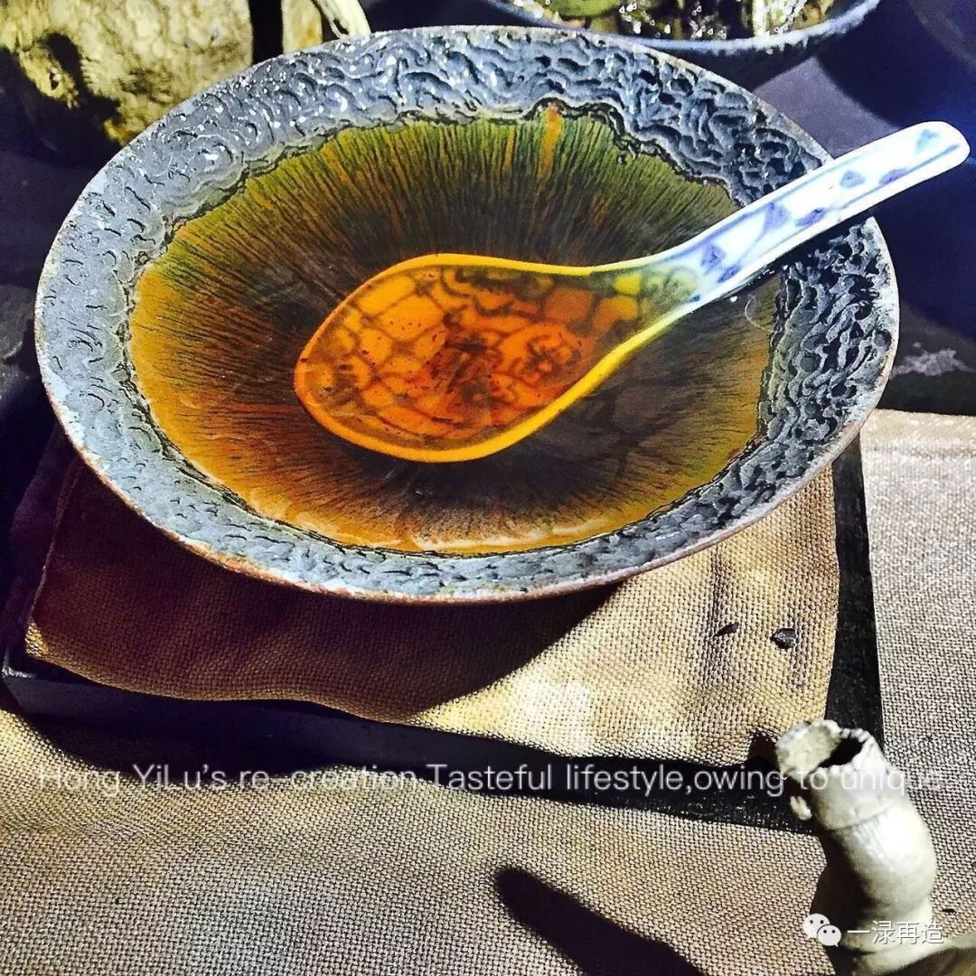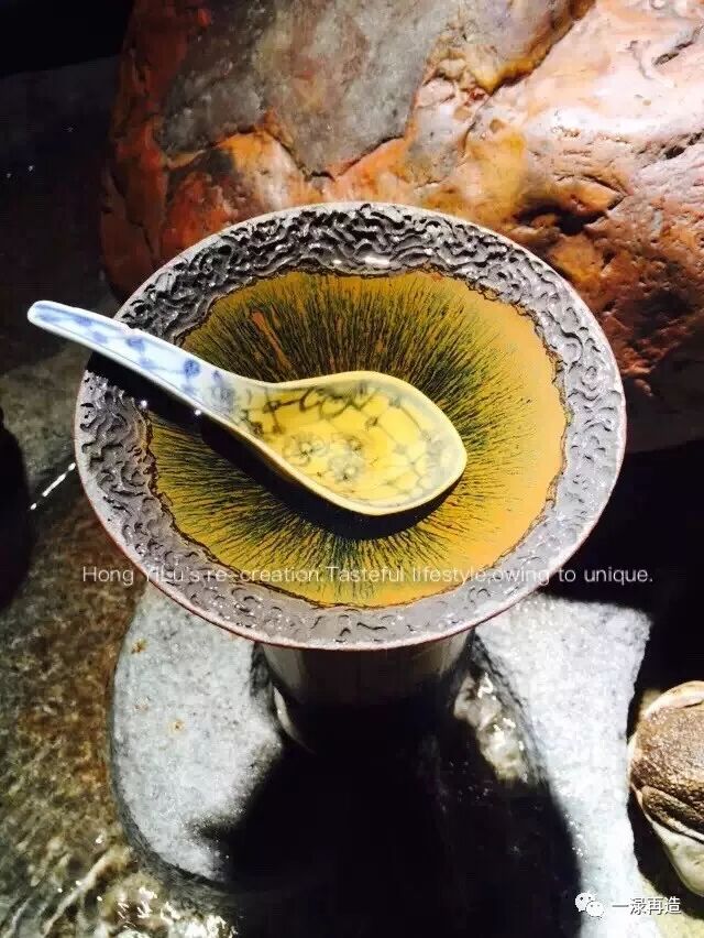 幾年前第一次到順風(fēng)堂,在二樓的曲水流觴前開(kāi)席,是我第一次見(jiàn)這只宋代的兔毫盞,入眼驚艷,過(guò)目難忘。