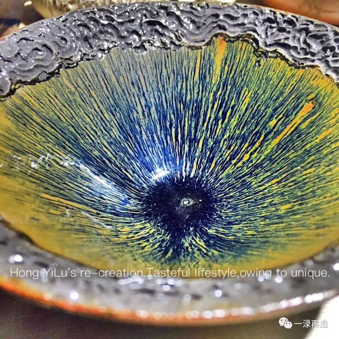 而此盞底色秋毫,條達(dá)璀璨,本已是盞中的上上之品。加之一淥于盞口邊緣再造的云紋,古樸雅致,卻與盞壁的炫目光彩相得益彰,讓人舍不得錯(cuò)目,美得莫名從容。
