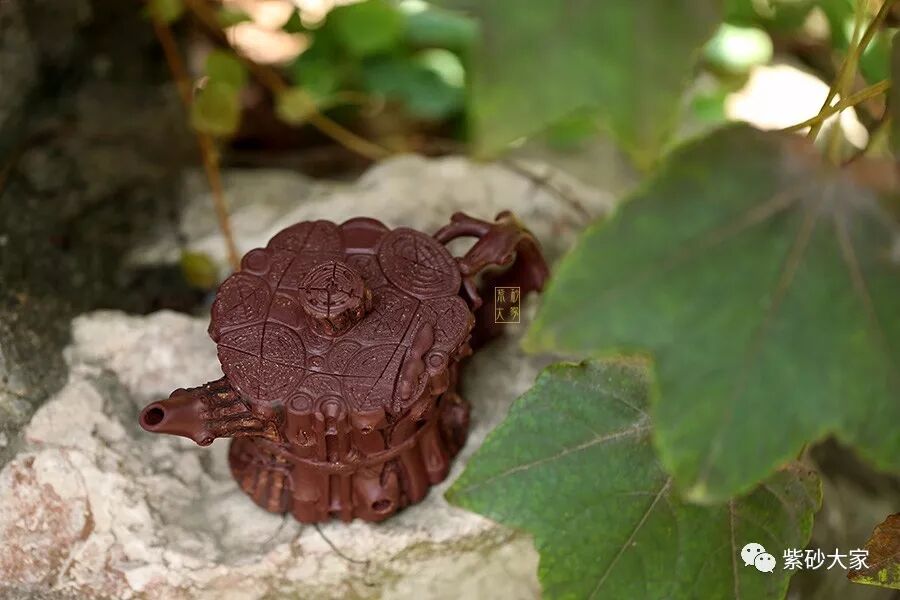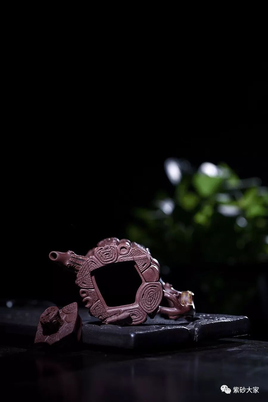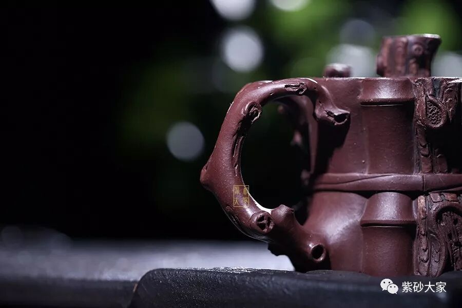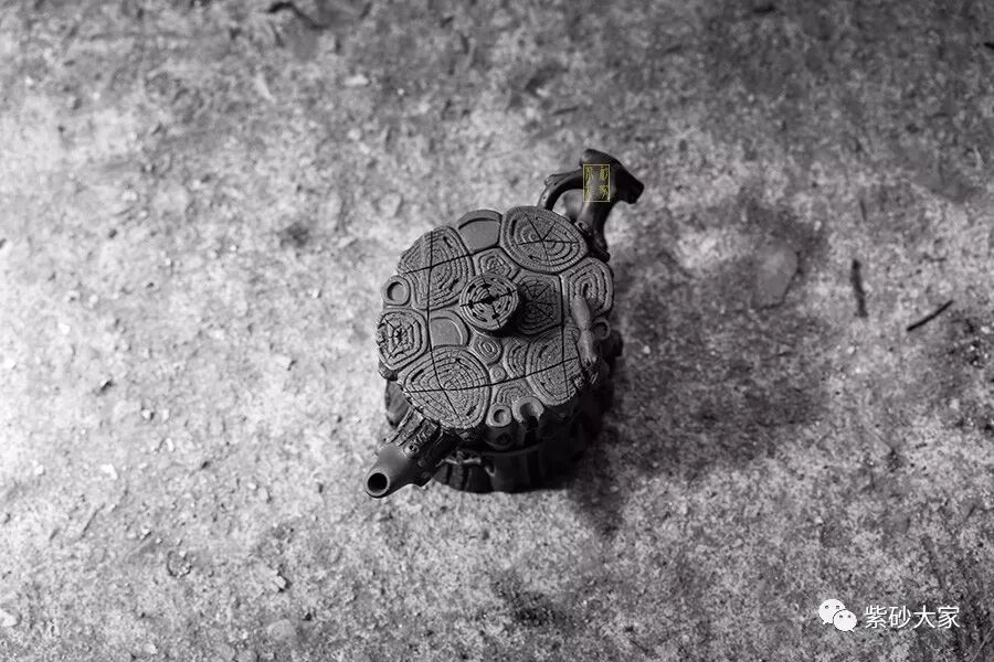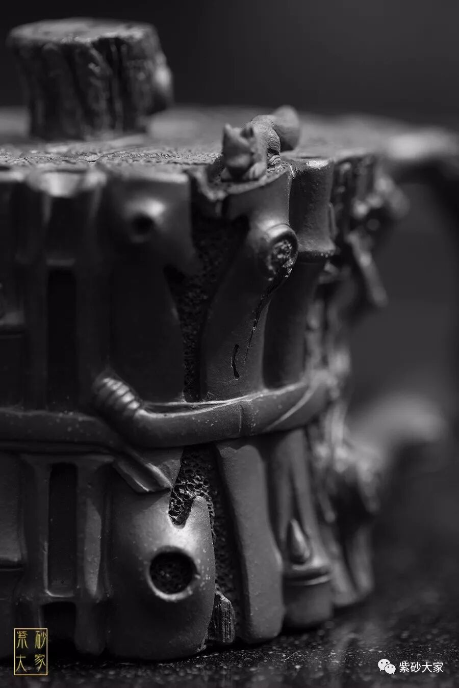 蓋紐又巧塑成一段松樁,更為絕妙的是,在樹(shù)干上,還塑有一只小松鼠。全器渾若天成,成為絕妙名壺。