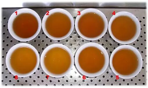 上圖是審評(píng)杯,品茶有感覺最好用這白瓷杯,杯沿寬8.5厘米,高5厘米,容量是105毫升,在杯中放入8克茶葉大約占杯容量的1/2—1/3。