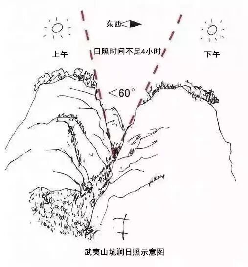 武夷山氣候濕熱,加上地形、山脈走向、山之陰陽、山之坑澗等原因,造成了各個(gè)山場(chǎng)間氣候的差異,為巖茶的生長提供了不同的氣候環(huán)境。