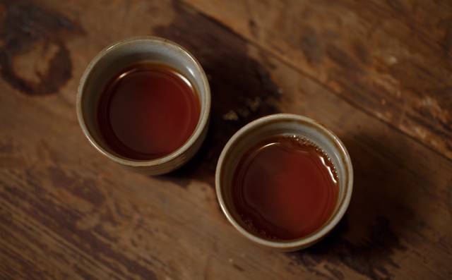 黑茶的湯色一般較深,因渥堆時(shí)間的長(zhǎng)短,呈黃褐色或紅褐色。