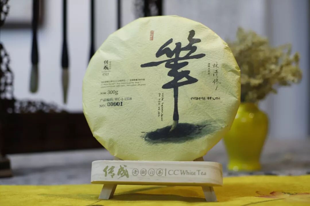 傳成老樹白茶9317(文房四寶)以中國古代傳統(tǒng)文化中文書工具——筆、墨、紙、硯為主題,產(chǎn)品設(shè)計融入傳統(tǒng)文化,體現(xiàn)濃郁的中國風(fēng),是首款由資深茶人、清鏵股份大家長林清修先生簽名的茶餅。