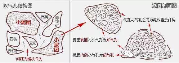 首先雙氣孔指的是紫砂泥的各種礦物之間結(jié)合面形成的氣孔,和黏土微小泥團(tuán)內(nèi)部的氣孔。雙氣孔的產(chǎn)生,即有紫砂泥自身結(jié)構(gòu)的原因,也和紫砂壺燒結(jié)過(guò)程中,各種礦物收縮率不同留下的氣孔有關(guān)。