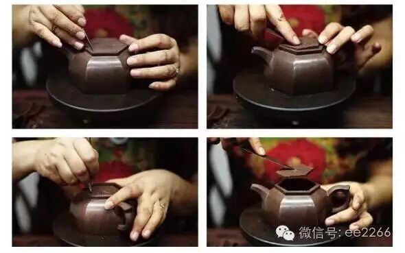 紫砂器成型的主要方法是手工捏作、印模。兩者都是先做好各個(gè)部件,再把各個(gè)部件粘在一起,再進(jìn)行表面精加工,特別是接口部分的加工。
