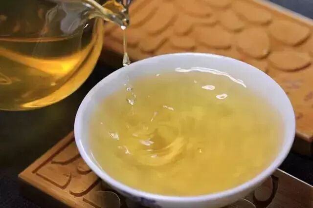 2、古樹茶的湯色:不同年份的有不同的變化,新茶湯色清亮,存放過程中逐步發(fā)生變化,存放三年的老古樹茶湯色已呈黃亮,油亮。且茶湯稠而厚。