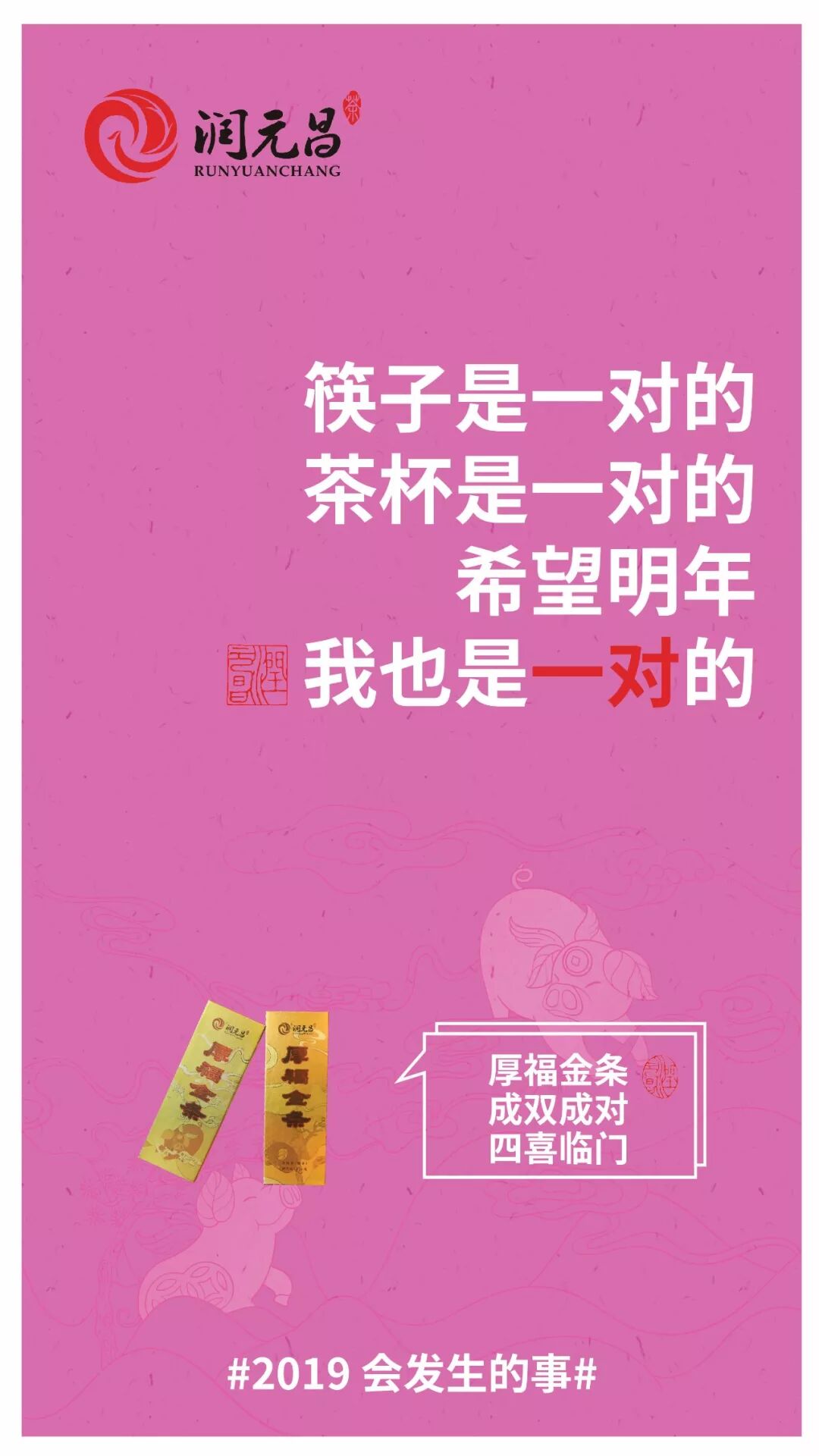 2018年,可能是狗年的緣故,單身狗們?cè)谄聊簧?、生活中吃夠了狗糧,不過(guò)沒(méi)關(guān)系!2019年,成雙成對(duì)的厚福金條,傳遞幸福之光,祝大家逆風(fēng)翻盤,過(guò)上雙雙把家還的美好人生!