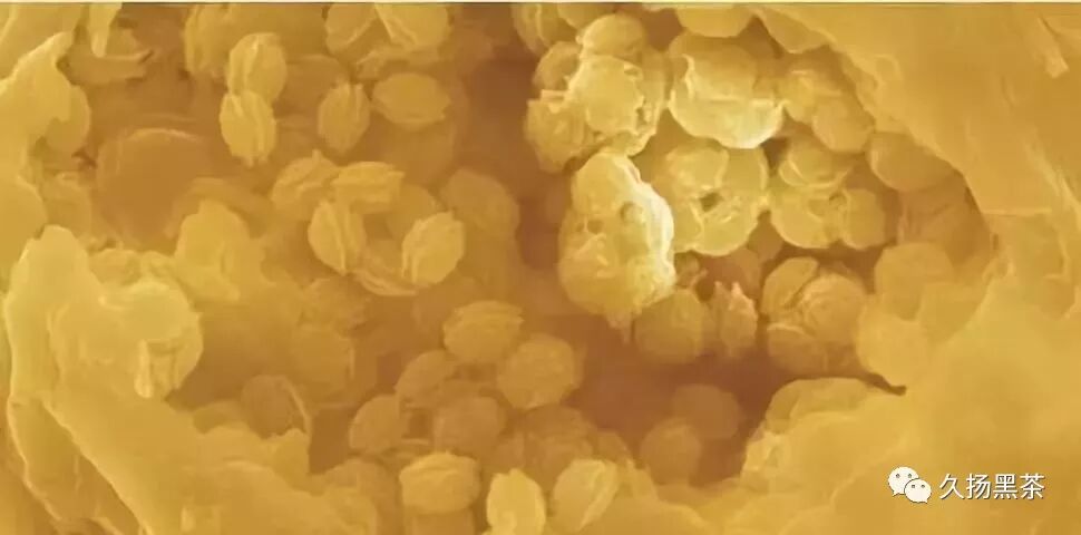 環(huán)境的獨(dú)特,致使安化茯茶在加工中產(chǎn)生的一種獨(dú)特的金黃色顆粒,科研發(fā)現(xiàn)是一種對(duì)人體非常有益的益生菌體,專家命名為“冠突散囊菌”,俗稱“金花”,這是其他茶類、其他地方的黑茶所不具有的。