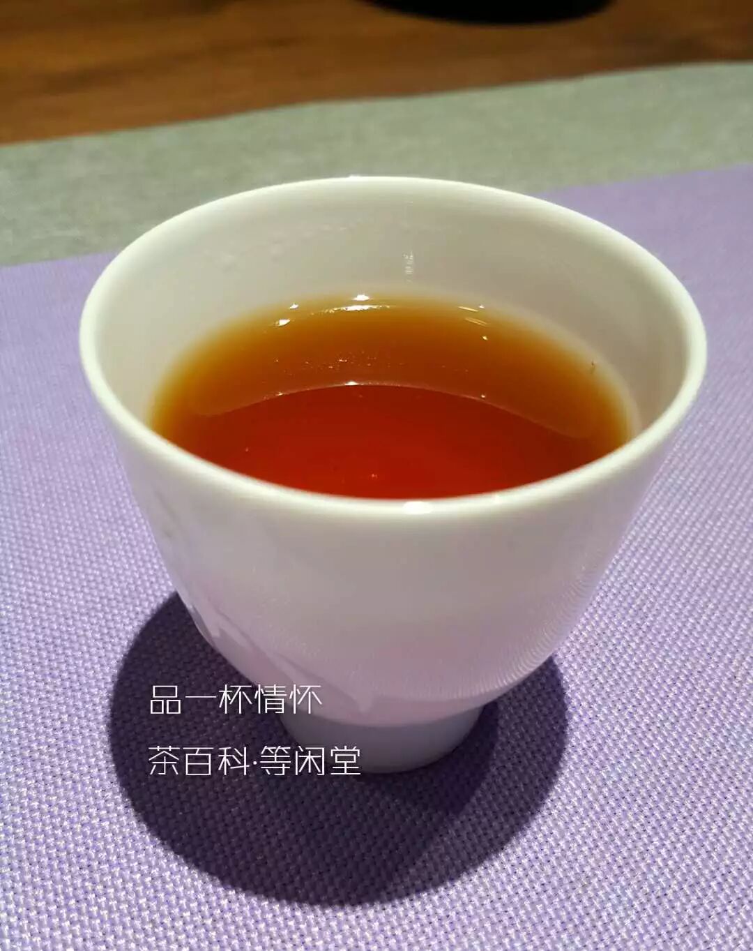 好的原料、好的發(fā)酵技術(shù)、好的存儲、再加上時間的味道(3--5年以上的存放轉(zhuǎn)化),湯色紅濃、透亮,深紅葡萄酒色,十分紅艷與誘人,看了就想喝;香氣濃郁,有植物烘干后特有的香氣,掛杯持久,有棗香、糯香、荷香;口感甘甜,潤滑,醇厚,生津,無苦、澀味,且甘甜持久。