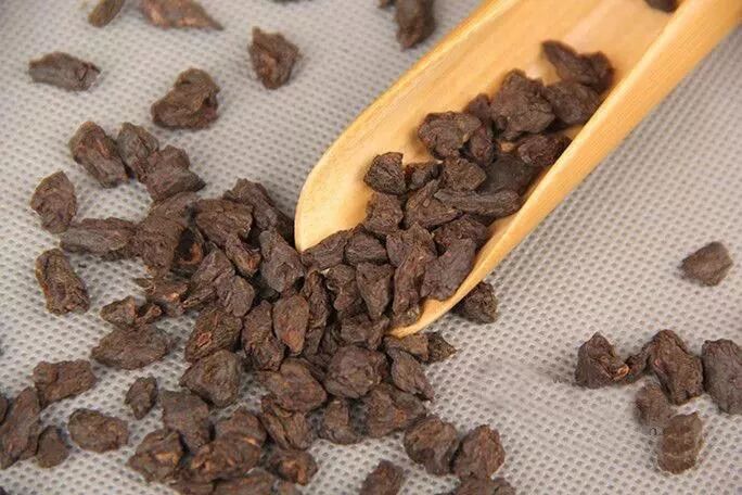 碎銀子茶味道應(yīng)是熟茶香中帶有淡淡的糯香味,而仿品只有很重的糯香味無茶味,甚至?xí)须s味或者霉味、渥堆味。