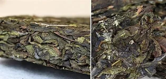 老黃片的形成,一是采摘時(shí)一芽一葉或一芽二葉之外的第三葉,一般不會(huì)到第四葉;二是揉捻時(shí)沒有揉捻到位,條索比較疏松;在這兩個(gè)情況下,殺青會(huì)造成葉片顏色發(fā)黃或綠色更深。因此,如果不把這部分茶菁揀出,那么壓成型后條索的觀感就差了。