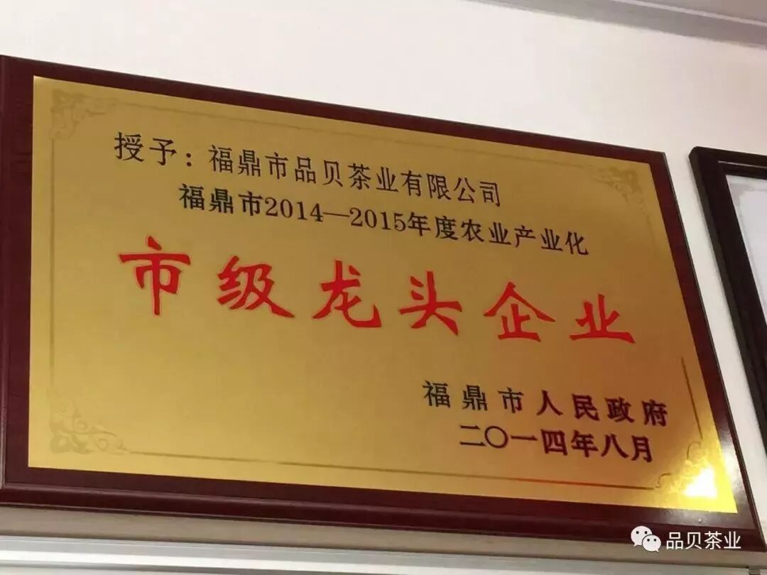 福鼎市人民政府授予“市級(jí)龍頭企業(yè)稱號(hào)”