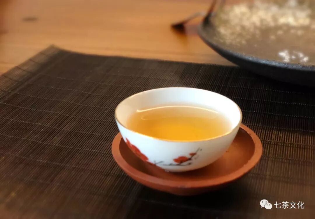 制法比綠茶制法多個(gè)悶堆工序。湯色一般是淺黃略帶綠,清澈明亮。