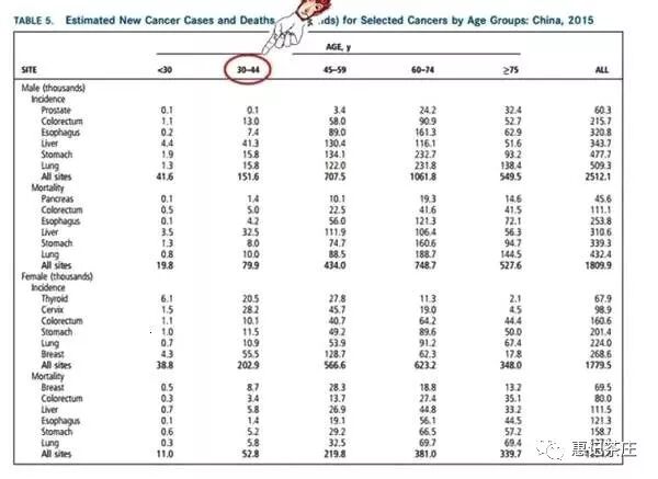 那多少歲更容易患癌癥呢?看紅色標(biāo)記,30-44歲是癌癥的突發(fā)期。