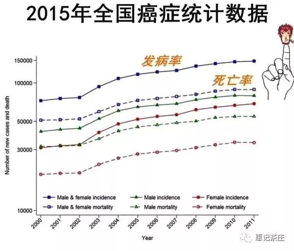 從圖中,可以清晰的看到。中國癌癥發(fā)病率在持續(xù)增加,也就是說,中國人得癌癥的機(jī)會在增大。有人說,得癌癥就像中彩票,一不小心就中了。當(dāng)然有時比中彩票的機(jī)率還要大。