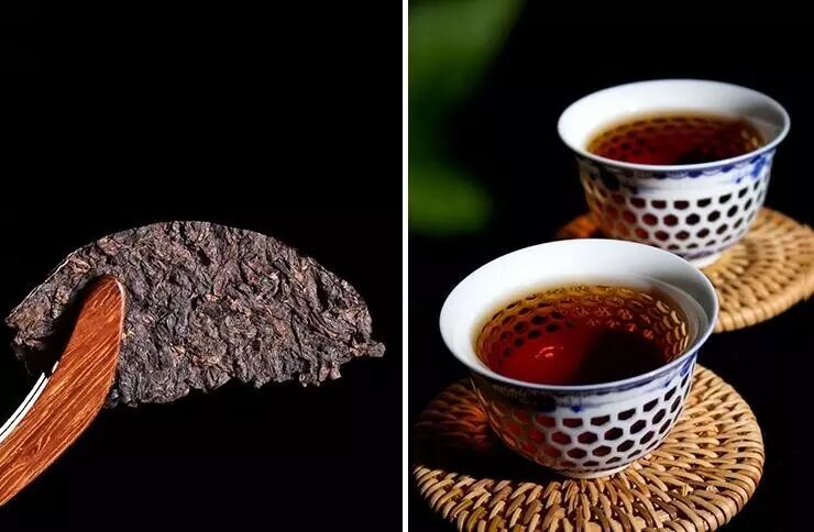 云南生長的大葉種茶葉經(jīng)過日凋(曬青)再經(jīng)過發(fā)水渥堆壓制成型,稱為熟餅,熟沱、熟磚。