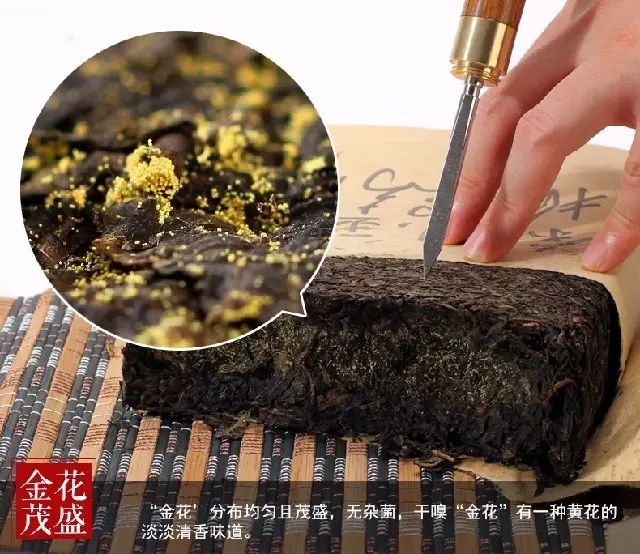 金花茂盛與否是茯磚茶品質(zhì)的體現(xiàn)。“金花”生長好的茶滋味醇和,經(jīng)過在加上后期的轉(zhuǎn)化,苦澀味逐漸褪去,更能去油膩,利消化。