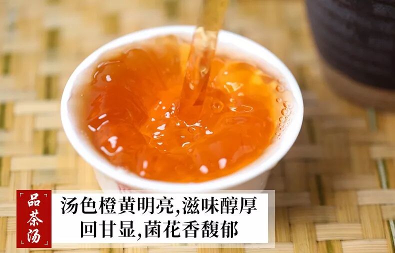 品質(zhì)上乘的黑茶耐泡性好,沖泡后湯色橙黃明亮,年份久的黑茶茶湯顏色較深,偏棕紅色;劣質(zhì)黑茶,湯色發(fā)渾,有雜質(zhì),不耐泡,茶香純度不正,夾雜有異味。優(yōu)質(zhì)黑茶香氣純正,有松煙香,香氣持久性好,滋味醇厚,回味甘甜,滿口生津,有齒頰留香之感。