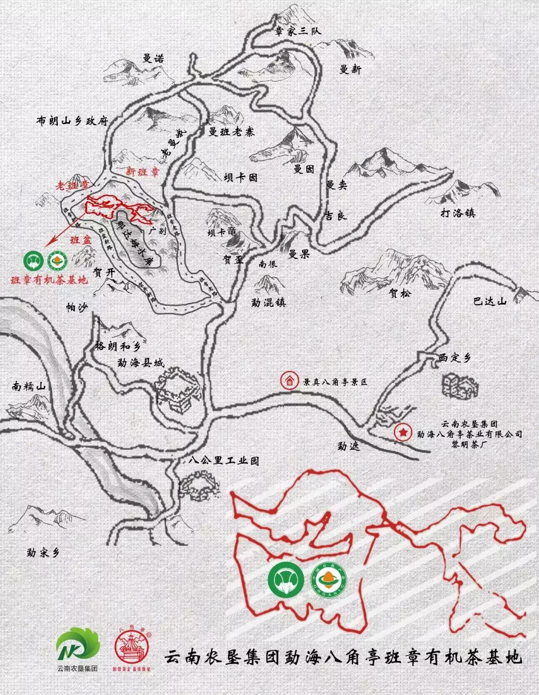而班章有機茶基地正是位于西雙版納世界茶王之鄉(xiāng)的布朗鄉(xiāng),老班章村、新班章村與那達勐水庫水源保護區(qū)交匯處,平均海拔1700米,該基地與老班章村直線距離僅1000多米,屬于核心稀缺的地域。
