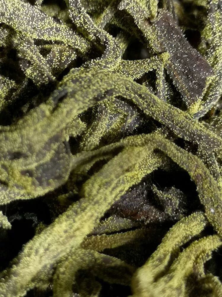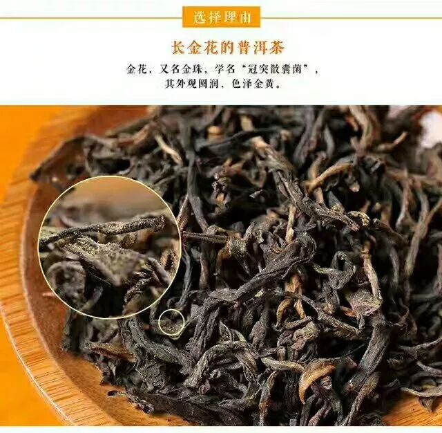 普洱茶的金花“冠突散囊菌”,在陳年的茶品中才可能偶然出現(xiàn),是天作巧合。制成的茶品在外冷內(nèi)熱、外干內(nèi)濕的前提下,茶品內(nèi)果實較多或鮮葉較粗老而茶葉滲出物濃稠情況下,且要有“冠突散囊菌”存在于茶原料內(nèi),或在制成品后攤晾過程遇有此類微生物附著,還需在短期內(nèi)形成最初的微小群落,才能在以后的儲藏過程中逐步生長。陳年熟茶中較陳年生茶中的“冠突散囊菌”出現(xiàn)幾率更高些,但也是相當少見的,畢竟“冠突散囊菌”的孢子,并不十分容易介入并適合在普洱茶的后發(fā)酵過程中大量存活。金花普洱茶,因為數(shù)量稀少,生成條件缺一不可。成為可遇不可求的茶中珍品!