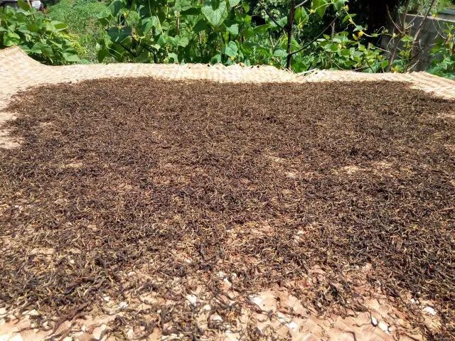 為了保留曬紅后期的轉(zhuǎn)化空間,我們只能選擇日曬干燥的工藝。所以因時(shí)因地制宜成了整個(gè)制作過(guò)程中最重要的一部分。天陰不能采收,下雨不能發(fā)酵,以至于在今年這樣的氣候特點(diǎn)下,我們的紅茶制作,至少減產(chǎn)50%。