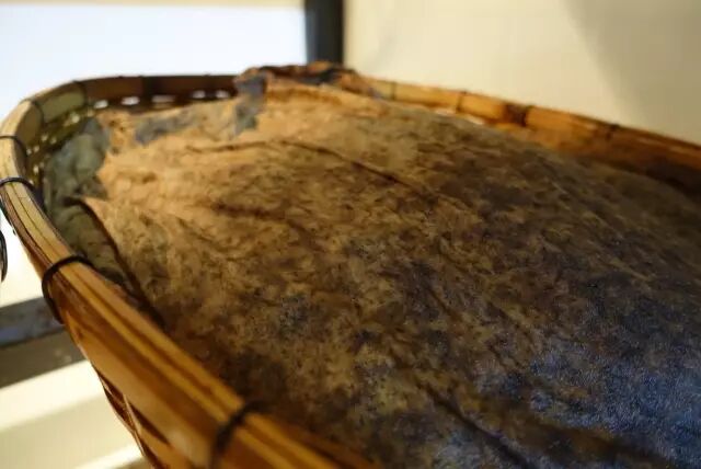 而最令我們驚喜的環(huán)節(jié)就是壓制。壓制是曬紅制作的最后一個(gè)步驟,本來(lái)的想法只是,壓制后的茶葉利于存放和運(yùn)輸,不料,蒸汽瞬間的蒸壓不僅讓最后殘余的一點(diǎn)低沸點(diǎn)的青草氣完全逸散,甜香四溢,而且短暫的濕水再發(fā)酵,反而使得曬紅的口感更加的甜潤(rùn)飽滿。