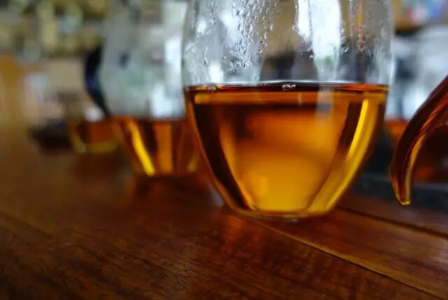 從新茶到老茶,曬紅湯感的變化逐漸從清爽到厚滑,濃度變強(qiáng),但湯色變化不大
