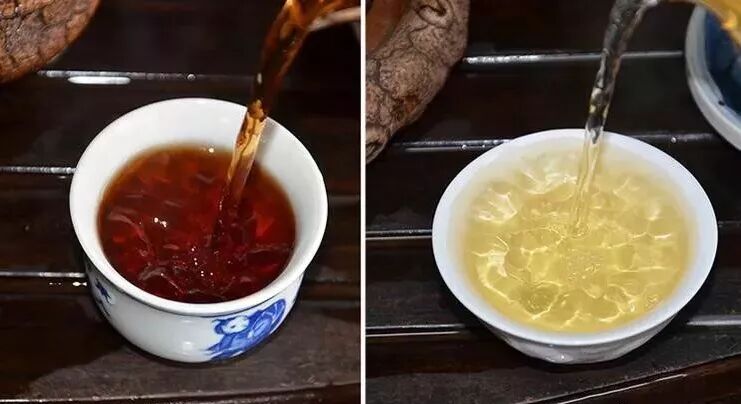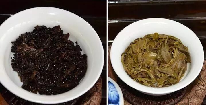 ▲ 左側(cè)為生普洱,右側(cè)為熟普洱