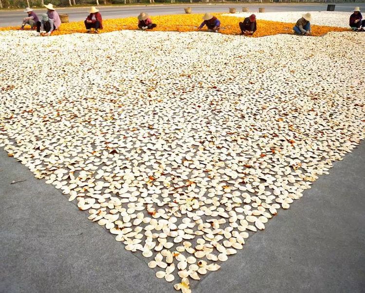 一年一度的新會(huì)柑收獲季節(jié)已經(jīng)來臨,這幾年紅遍茶圈的小青柑,讓新會(huì)陳皮也大熱了起來。當(dāng)你穿梳在新會(huì)的大街小巷,到處都是果農(nóng)們在開皮曬皮,場面著實(shí)壯觀,而這樣的鏡頭處處皆是。(以下2張圖來自網(wǎng))