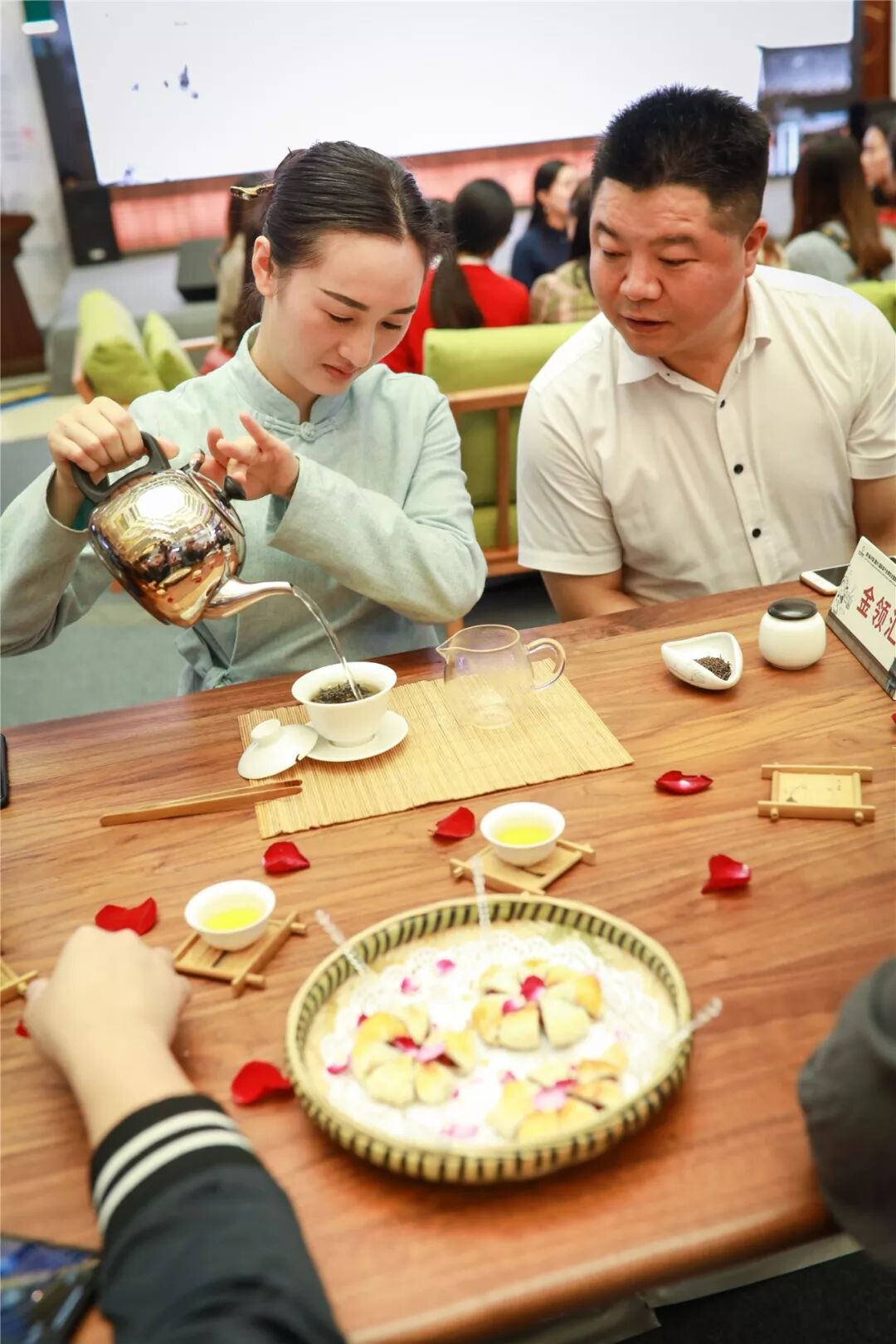 金領(lǐng)匯特別嘉賓現(xiàn)場演唱了一首云南山歌,品著鮮花餅聽著動聽的歌聲,現(xiàn)場的茶友如同親臨云南