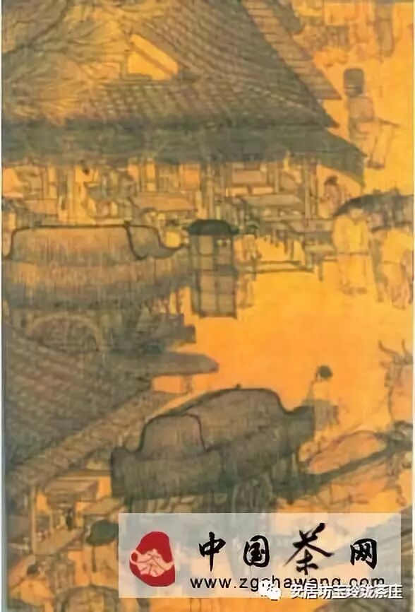 關(guān)于這一情形,我們從北宋張擇端的著名畫作《清明上河圖》就可以看出。這是一 副著名的古代名俗風(fēng)光畫卷,被稱為中國(guó)畫苑中的瑰寶。畫的是北宋卞京也就是現(xiàn)在的 開封東郊虹橋一帶的風(fēng)光人物。畫家對(duì)市街上的各種商業(yè)、手工業(yè)活動(dòng)作了精密詳盡的 描繪。這中間,除了酒樓、藥鋪等大型的店鋪外,可以看到在十字路口還有茶鋪。這幅 圖生動(dòng)地再現(xiàn)了古代茶館的風(fēng)貌。