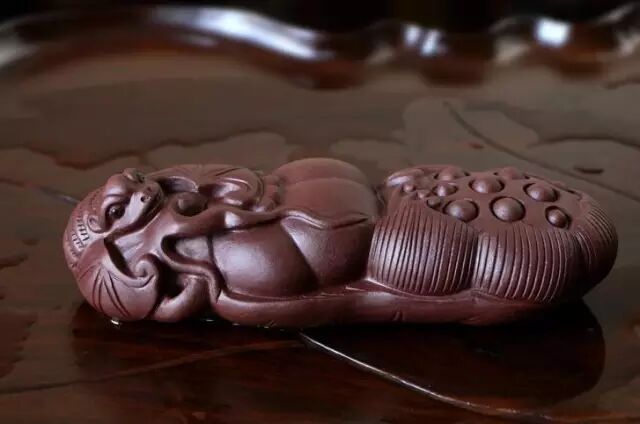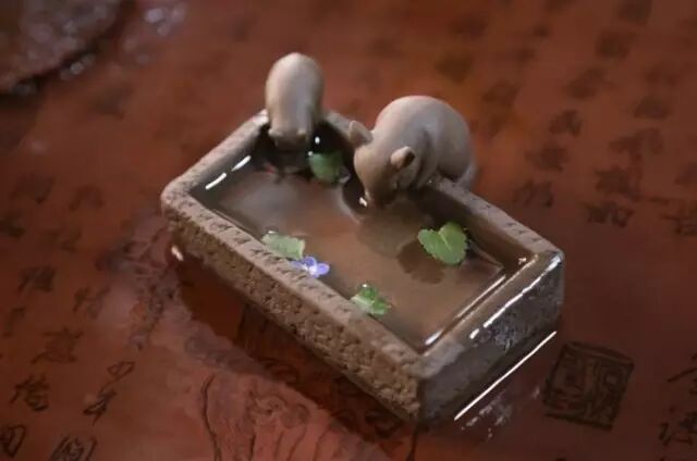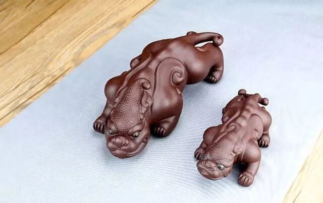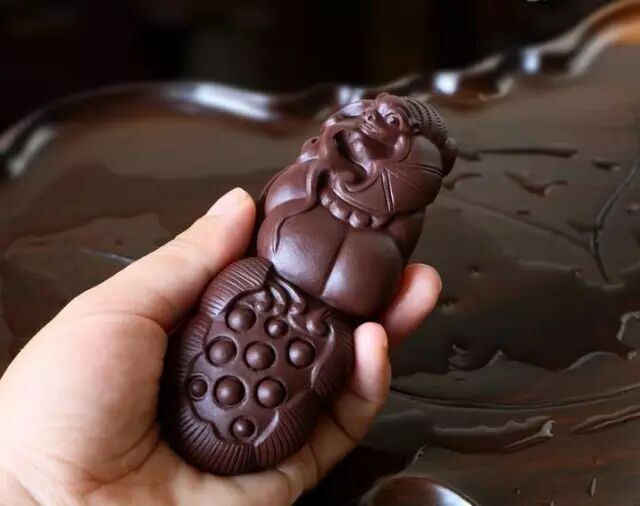 :豬歷來是富足、祥瑞的象征。所以把它養(yǎng)在茶盤上非??蓯?,也很招人喜歡。一般養(yǎng)單個的,可以買比較大的,但也有一對的,分為陰刻和陽刻,即有的出頭出腳出尾巴,有的則全在砂石的刀功上反映喜怒哀樂。