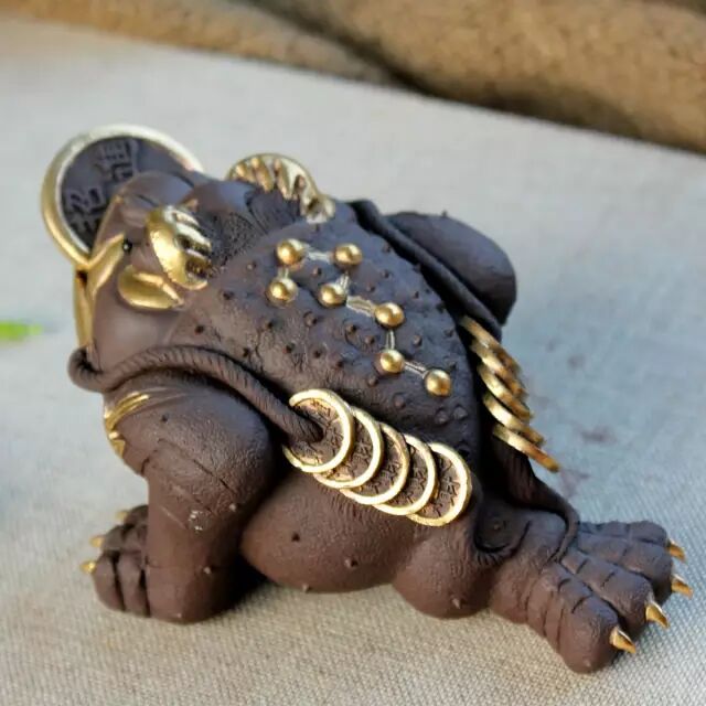 金蟾:“金蟾”是金錢的諧音,金蟾背上背著錢的,代表金錢一串串進家門。金蟾嘴巴中含錢可以轉動,代表賺錢的意思。金蟾嘴中沒有含錢,則代表吸錢的意思。