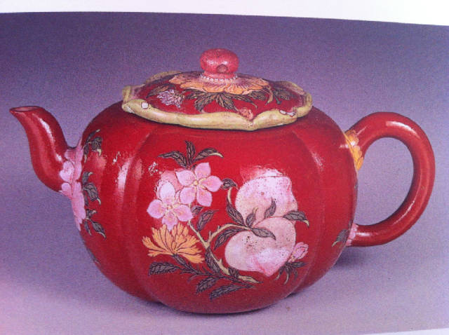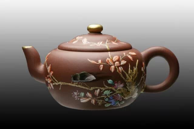 因此,故宮博物院藏很多康熙時期朱泥胎上琺瑯彩的紫砂茶器。其中尤以康熙時期最為精美,目前現存有十九件,藏于臺北故宮博物院。