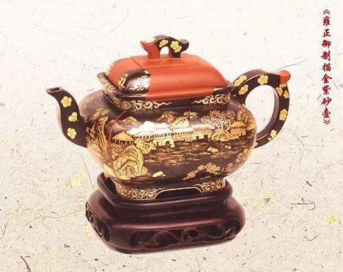 清高宗乾隆皇帝的嗜茶及對茶相關物事的投入,于中國茶史上,幾乎無人能出其右。這從其在位時所建的茶舍就可見一斑,乾隆在位時,在香山、圓明園、熱河避暑山莊等地所建的茶舍有十五處之多。還有不少乾隆皇帝裝扮成前朝文人雅士品茶的御畫。加微信號 eebbb44 帶你玩轉紫砂。而乾隆時期紫砂器最大的特色便是或刻或泥繪或鑲金,幾乎都有弘歷大詩人的御詩。